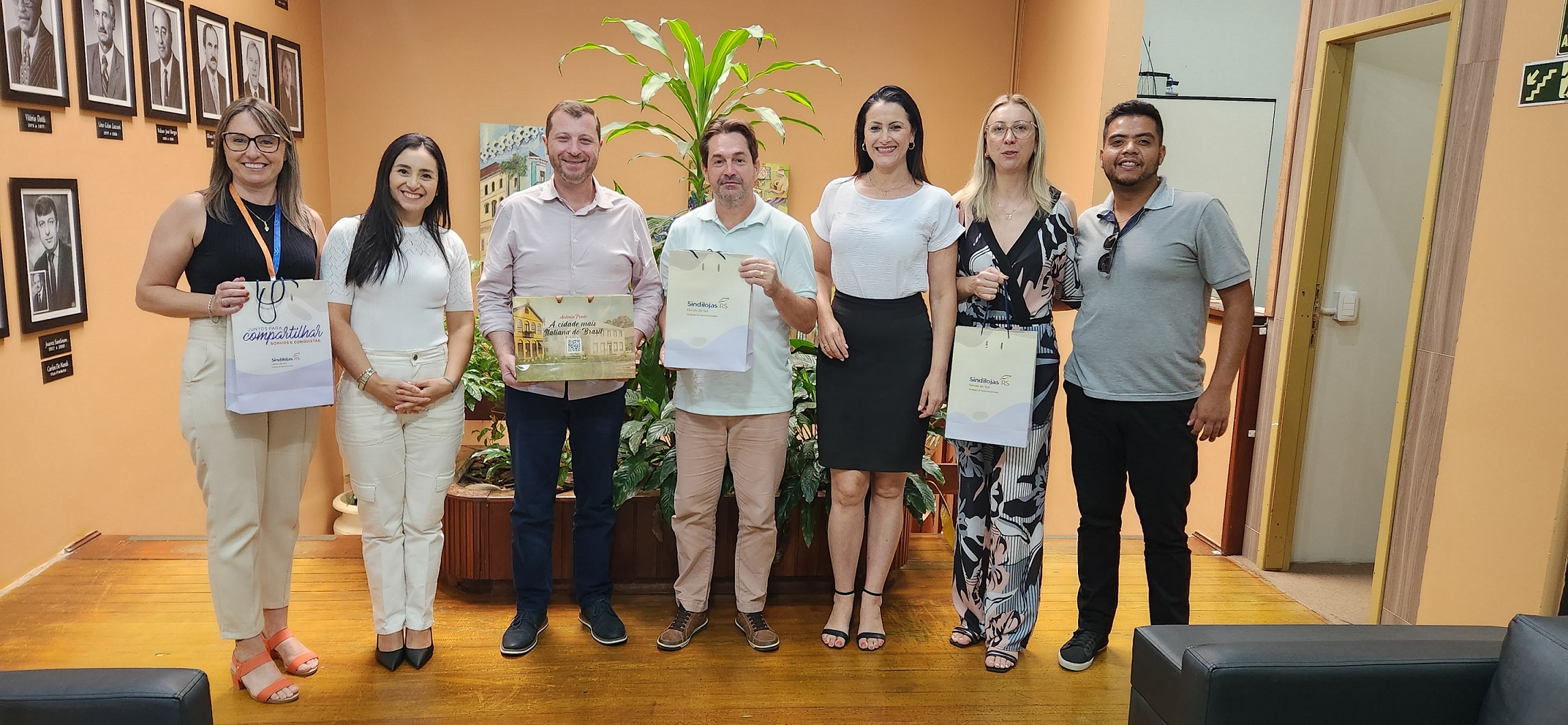 A comitiva do Sindilojas Caxias, formada pelo presidente Rossano Boff, pela gerente executiva e coordenadora de Comunicação, Lisandra De Bona, e pelo analista de Marketing, Cristhian Silva, estava acompanhada pela líder de Relações com o Mercado do Senac Caxias, Marcéli Milano. Foram recepcionados pelo vice-prefeito da cidade, Elias Zulian, e pela secretária de Comércio e Turismo, Patrícia Schenkel.