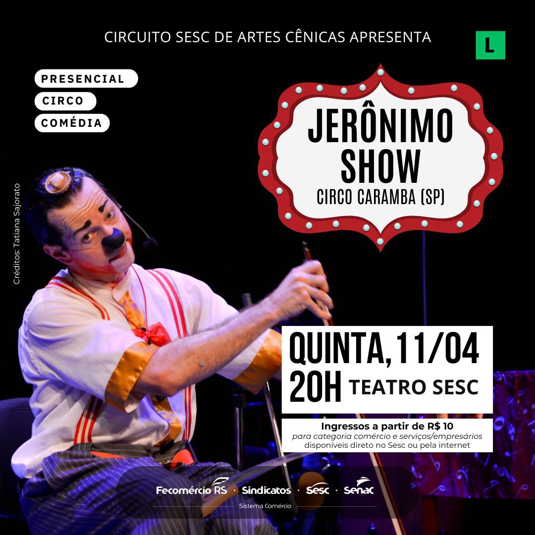 Ingressos pelo site www.sesc-rs.com.br/espetaculosculturais ou no Sesc Caxias do Sul (Rua Moreira César, 2462) a partir de R$ 10.