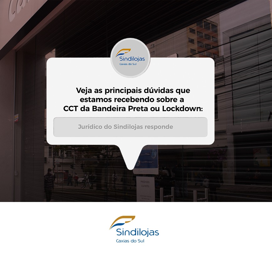 O Sindilojas Caxias elaborou os questionamentos mais frequentes sobre a CCT da Bandeira Preta ou Lockdown para ajudar os comerciantes sobre como utilizar os benefícios desse acordo. Se você ainda tiver dúvidas, a Assessoria Jurídica está à disposição para esclarecimentos pelo telefone 54 99700-2555 e também pelos e-mails juridico@sindilojascaxias.com.br e assistentejuridico@sindilojascaxias.com.br.