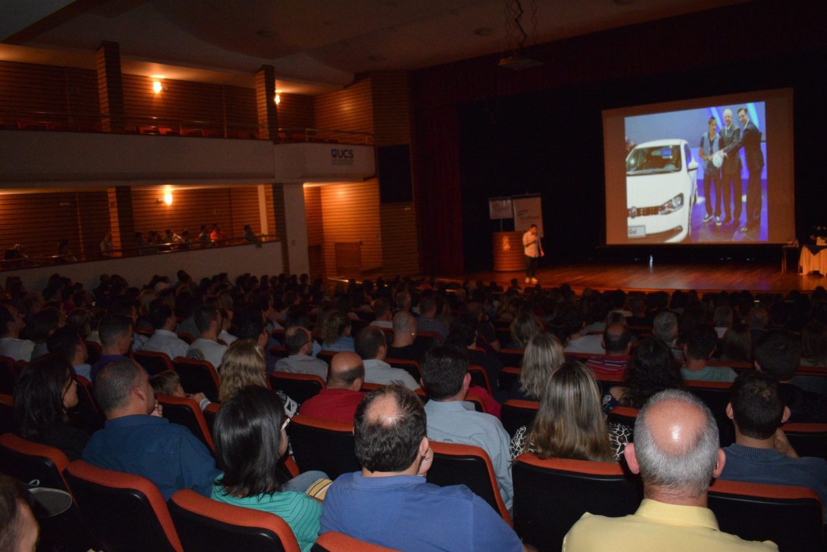 Em uma palestra descontraída recheada de efeitos visuais e trocadilhos, Luciano Potter falou sobre “Mudanças digitais” de um jeito leve que cativou o público de associados do Sindilojas Caxias e convidados, no UCS Teatro.