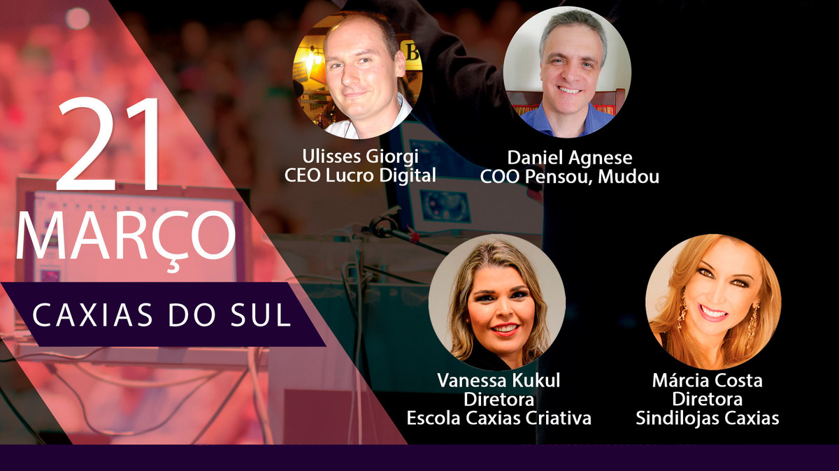 As inscrições e reservas podem ser feitas online pela página https://www.lucrodigital.com.br/ev-presencial-caxias