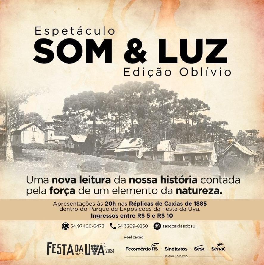 A 34ª Festa Nacional da Uva, em Caxias do Sul, marcará a retomada do espetáculo Som & Luz, uma das mais tradicionais atrações do evento, que não era realizada desde 2016. Com realização do Sesc/RS, em parceria com a Comissão Comunitária da festa, a nova edição será apresentado em uma nova leitura idealizada por Guilherme Montanari, que ganhará vida com a direção artística de Zica Stockmans e o talento de artistas circenses, bailarinos e músicos locais. Intitulada “Oblívio”, a nova versão foi apresentada em coletiva de imprensa na manhã desta terça-feira, 06 de fevereiro.