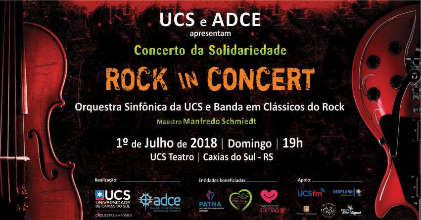 A Universidade de Caxias do Sul informa que no dia 1º de julho de 2018, a Orquestra Sinfônica apresentará o espetáculo Rock in Concert, às 19h, no UCS Teatro, estreando a Série Concertos da Solidariedade.