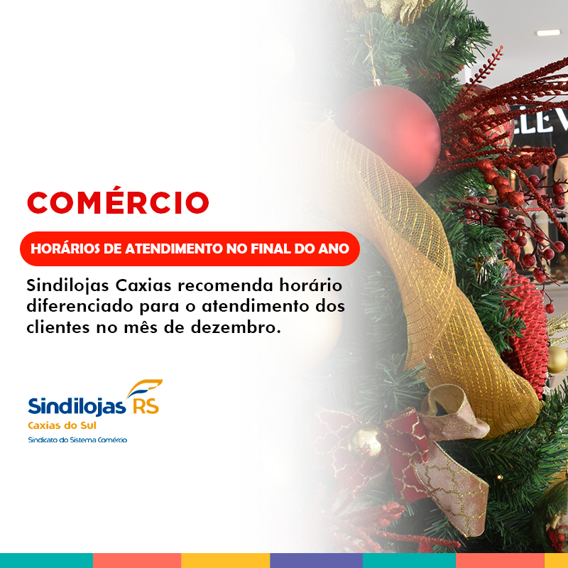 Para que o consumidor possa ter acesso facilitado ao comércio local para as compras de final de ano, o Sindilojas Caxias recomenda horário diferenciado para o atendimento dos clientes no mês de dezembro.
