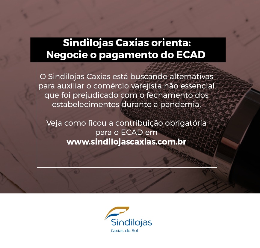 O Sindilojas Caxias está buscando alternativas para auxiliar o comércio varejista não essencial que foi prejudicado com o fechamento dos estabelecimentos durante a pandemia. Entre as demandas que afetam os custos do comércio varejista, está a contribuição obrigatória para o ECAD (Escritório Central de Arrecadação e Distribuição), referente à cobrança dos direitos autorais.